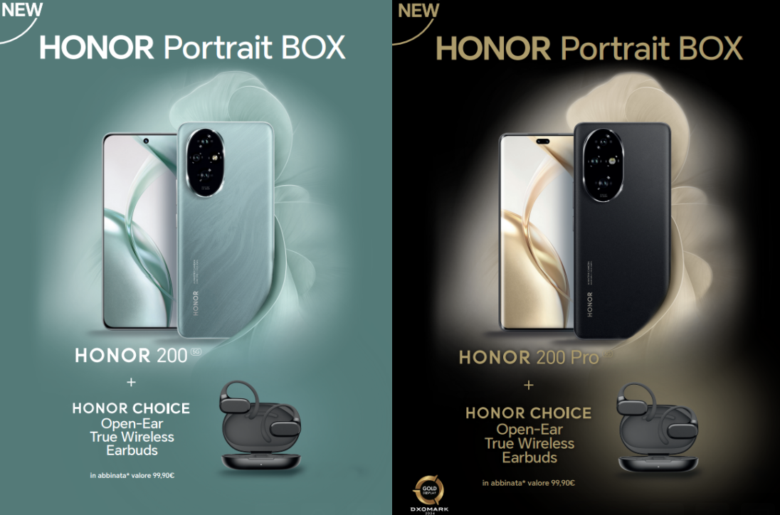 HONOR 200 è disponibile nelle colorazioni Emerald Green e Black in bundle con HONOR CHOICE Oper – Ear True Wireless Earbuds.