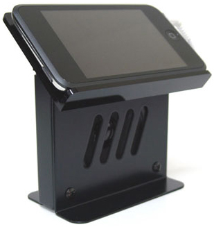 Supporto con speaker incorporato per Ipod touch completamente in acciaio.