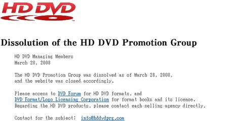 La notizia era già stata ufficializzata in passato, ma ieri c’è statao lo scioglimento ufficiale del gruppo HD DVD Promo.
