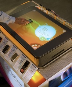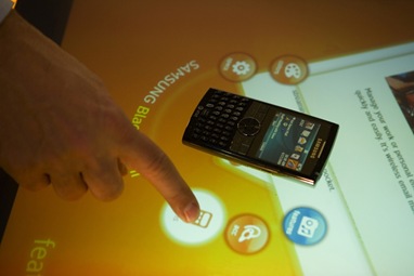 Grazie al Wireless e alla tecnologia multitouch, Surface sarà in grado di fornire informazioni dettagliate sui cellulari messi a disposizione da AT&T semplicemente appoggiandoli sulla superficie del computer-tavolino.