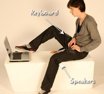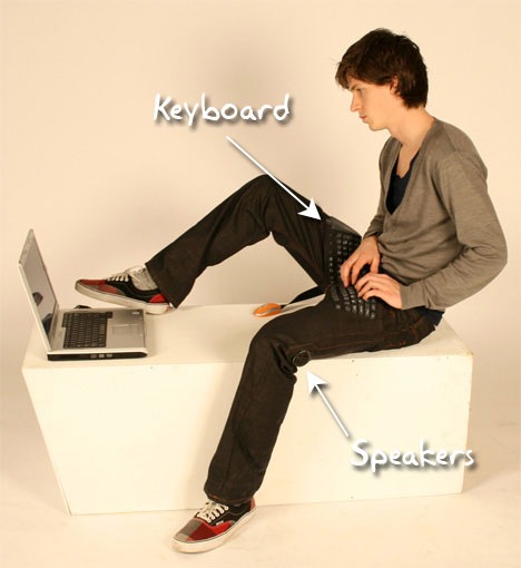 Si tratta di una tastiera integrata nei Jeans!! con altoparlanti incorporati nelle ginocchia..