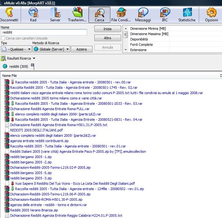 Se fate una ricerca con Emule e scrivete REDDITI, troverete tutte le liste!