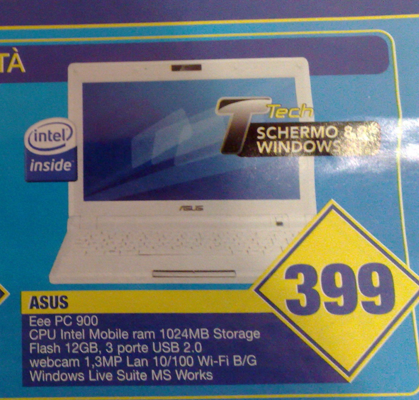 Ti volevo solo dire, se già non lo sapevi, che si può acquistare Asus Eee PC 900 a Mediaworld (almeno a Roma, non so dove sei). 🙂
