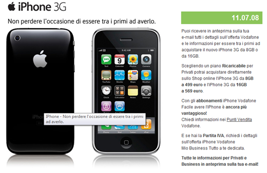 Il gioellino 3G è apparso nella pagina dedicata attraverso questo indirizzo http://www.iphone.vodafone.it