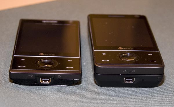 Dopo aver visto le immagini del HTC TOUCH PRO, eccolo vicino al suo fratellino minore Diamond!! Non sembra neanche tantp più grosso..La tastiera QWERTY è molto sottile!