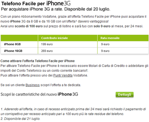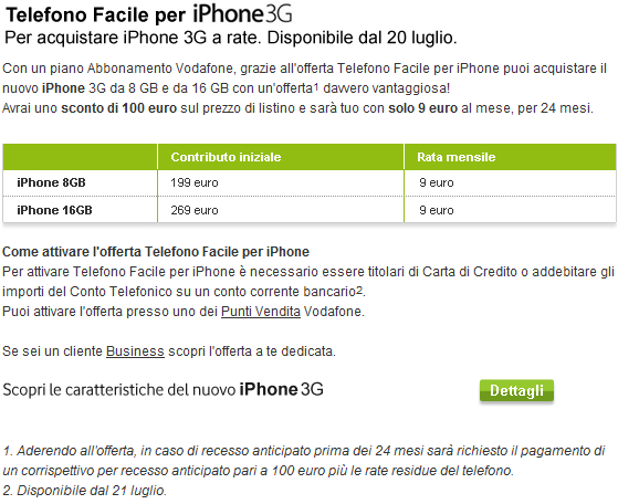 In partica il modello 8GB vi costerà dopo i 24 mesi 415 euro, spese telefoniche escluse e 485 euro il modello da 16 GB spese telefoniche escluse