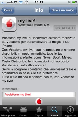 Nella giornata di oggi è partito il nuovo servizio dedicato ai possessori di iphone, Vodafone My Live! Lo si può scaricare ed installare tramite App Store.