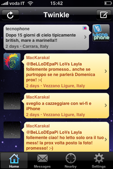 - Twinkle : Il migliore client Twitter per iPhone!! Io lo sto usando da molto tempo e mi trovo benissimo!! Venite sul mio Twitter http://twitter.com/tecnophone Prezzo : GRATIS