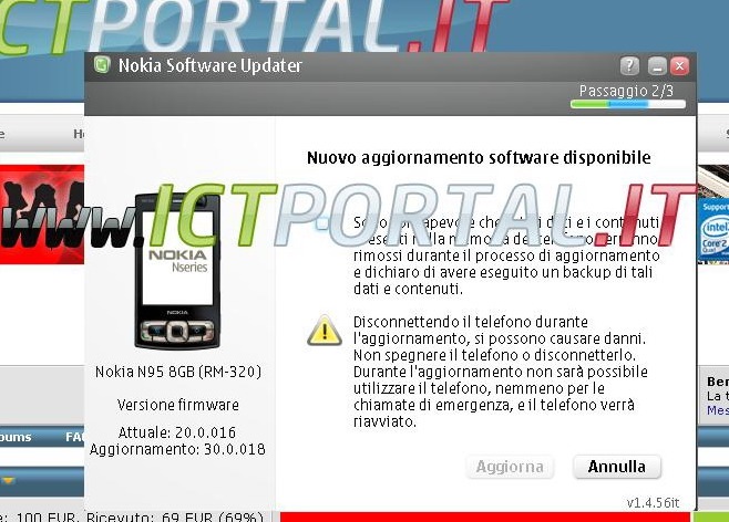 Controlla se hai l’ultima versione di “Nokia Software Update”(il progr. con il quale si aggiorna il firm.)perché è da poco uscito un aggiornamento, potrebbe essere quello non essendoci tempi di attesa per cliccare aggiorna…rimango a disposizione per qualsiasi cosa.