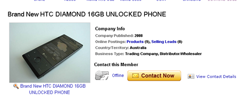 Il sito PocketNow fa notare che sullo shop Alibaba è apparso un HTC Diamond da 16 GB!!