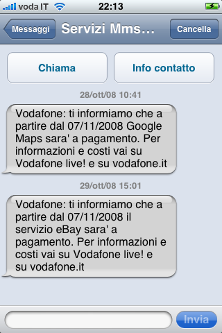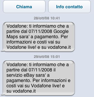Mhhh…Google Maps..Ebay… vediamo… Messenger è già a pagamento?? E Twitter, mySpace e Facebook? Ditemelo se questi software sono ancora gratuiti che invio una bella mail alla Vodafone.. magari sono sfuggiti alle menti geniali del marketing…