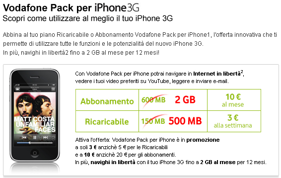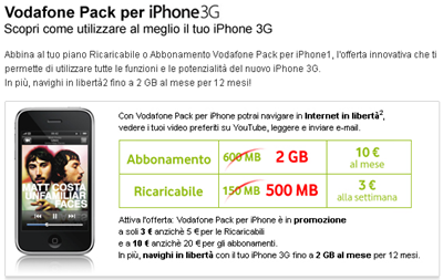 iPhone Vodafone Pack è una vantaggiosa offerta dedicata ai possessori di iphone 3G.
