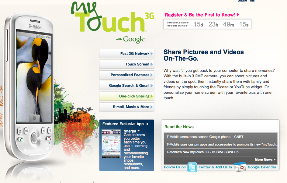 Il Carrier T-Mobile ha presentato ufficialmente il My Touch 3G, conosciuto in europa come Htc magic.