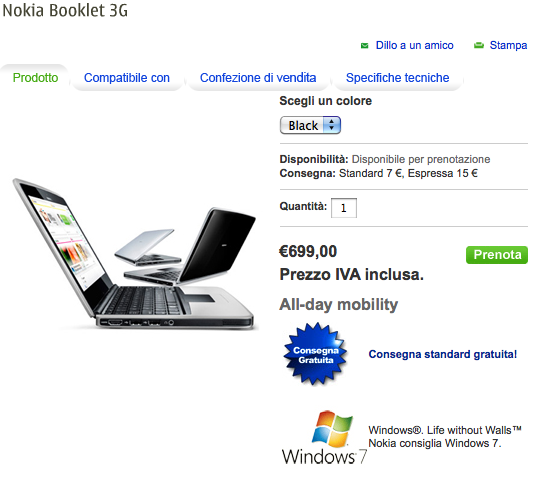 Il nuovo Nokia Booklet 3G è disponibile in prenotazione nello store OnLine di mamma Nokia!
