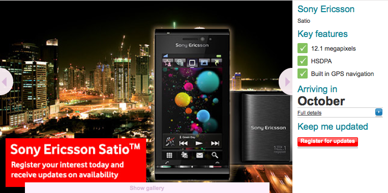 Sony Ericsson SATIO, 12 megapixel di fotocamera posson bastare?