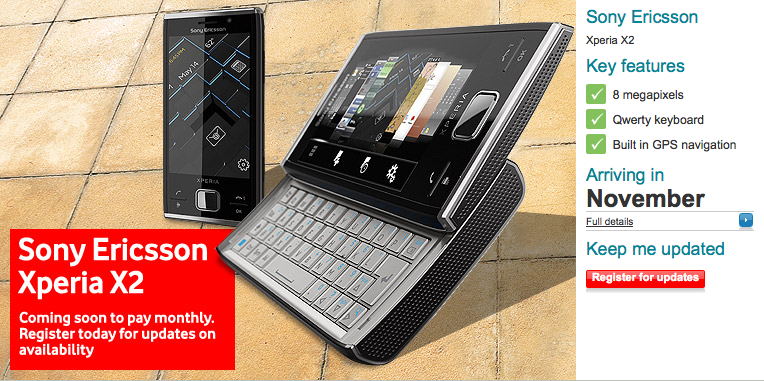 - Sony Ericsson Xperia X2 : Novembre 2009