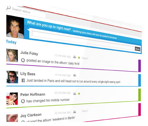 Vodafone 360 è sincronizzato con tutti i tuoi social network e ti consente di sapere sempre cosa stanno facendo I tuoi amici e di condividere con loro il tuo status.