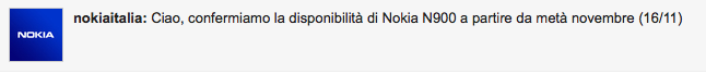 Ho contattato Nokia Italia via Twitter chiedendo una data per la disponibilità di N900.