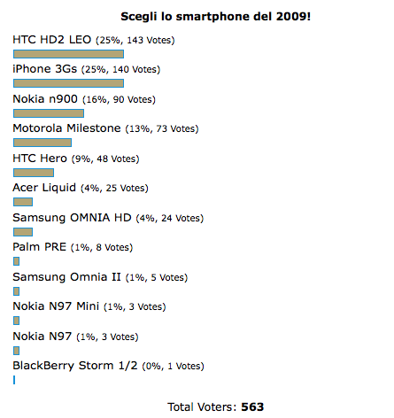 Al secondo posto si piazza iPhone 3Gs staccato solo di 3 miseri voti, mentre al terzo posto troviamo Nokia N900!