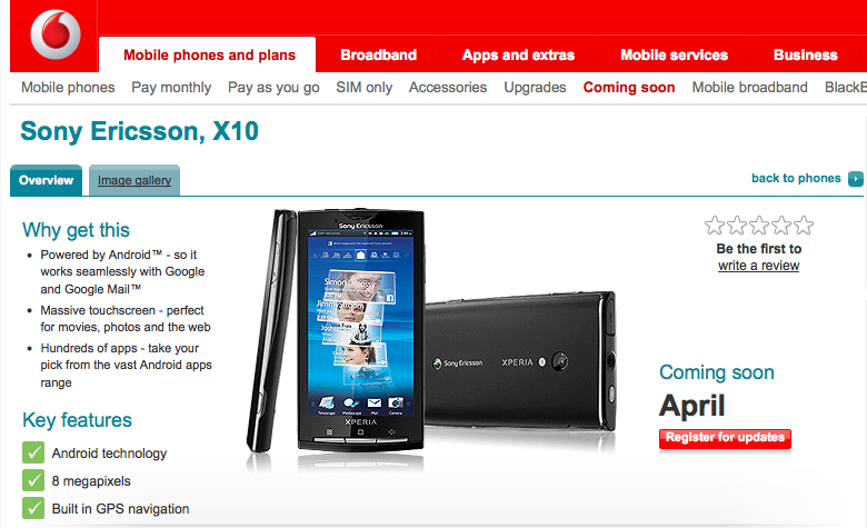 Il Sony ericsson Xperia X10 è apparso nello shop di Vodaone Uk.