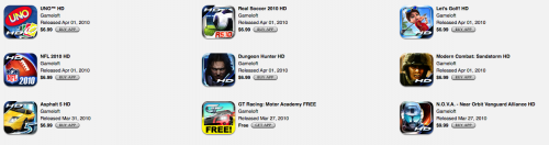 - UNO HD, Dungeon Hunter HD, Let’s Golf HD, Asphalt 5 HD, Modern Combat Sandstorm HD, Real Soccer 2010 HD e NFL 2010 HD 6,99 dollari