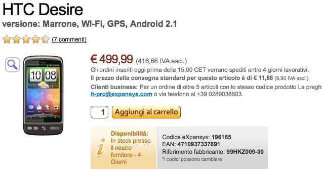 Ho ricevuto diverse lamentele da utenti che hanno acquistato Htc Desire su expansys.
