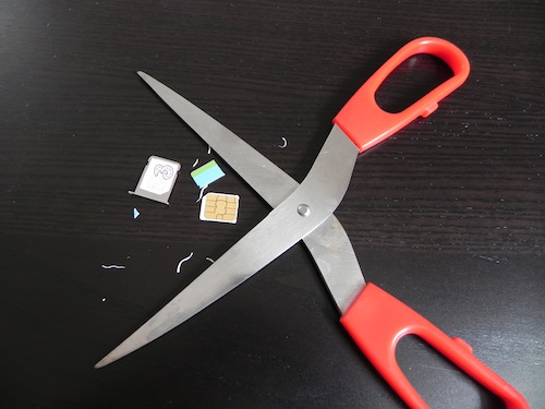 Utilizzo la MicroSim della Vodafone ( inclusa nella confezione) come sagome e con una bella forbice affilata tagliuzzo quà e là, provando varie volte con il carrellino porta sim.
