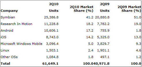 Nel secondo trimestre 2010 ha piazzato un bel 17,2 % nelle vendite mondiali, scavalcando iPhone e il suo IOS.