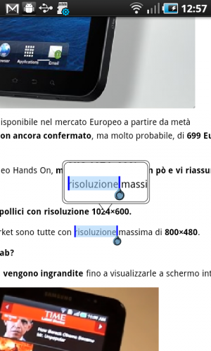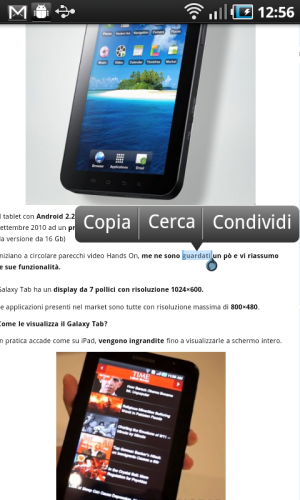 - Possibilità di condividere, tradurre e cercare il testo selezionato