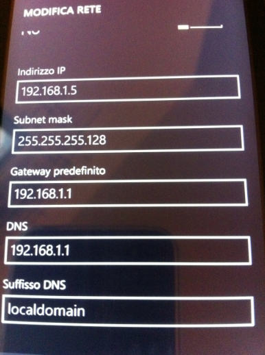 L’amico Diego di WindowsPhoneItaly mi conferma che al momento Windows phone 7 non supporta indirizzi IP statici, solo dinamici.