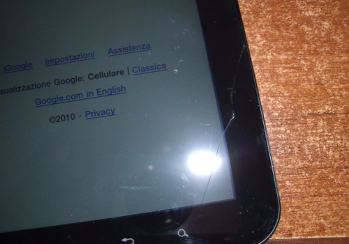 Il Tablet è caduto per terra da circa 30 – 35 cm di altezza e il vetro Gorilla Glass si è crepato.
