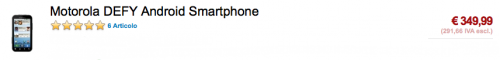 Il Motorola Defy (MB 525) è in vendita su Expansys al prezzo di 349,99 euro.