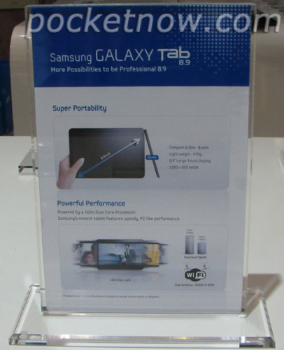 A poche opre dal via della fiera CTIA Wireless in Florida, pocketnow pubblica in anteprima le caratteristiche tecniche del nuovo Samsung Galaxy Tab da 8.9 pollici!