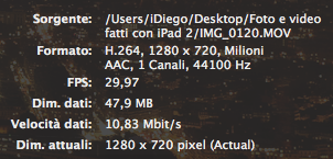 Il video è in formato .mov e pesa 47,9 MB per 35 secondi