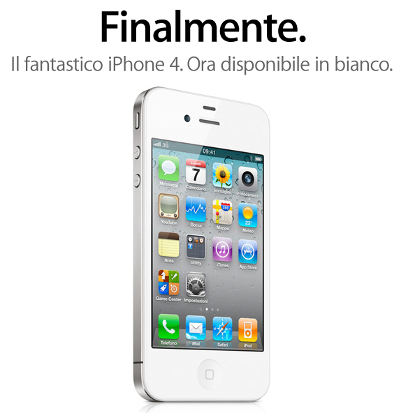 Dopo un attesa di circa 7 mesi, iPhone 4 Bianco è in vendita e Apple lo pubblicizza con una bella scrita “finalmente”.