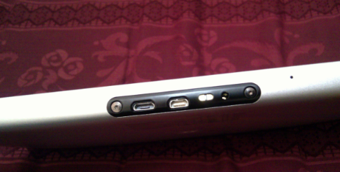 In questa immagine vediamo il connettore per la Dock Station, la porta MicroUSB e la porta Micro HDMI.
