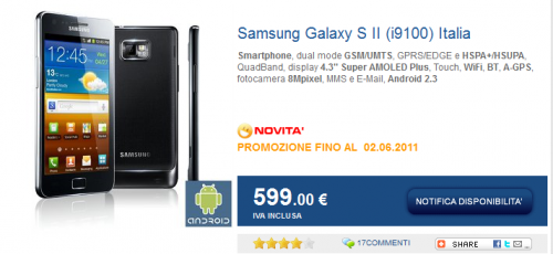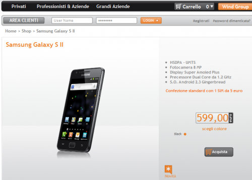 Ed ecco in vendita presso Marcopoloshop.it e presso Wind l’attesissimo Samsung Galaxy SII