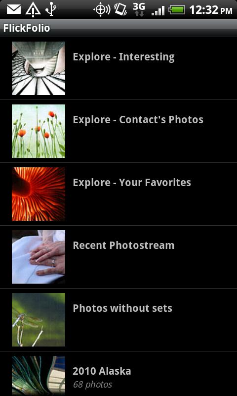 Quando si fa uno switch, che sia da iOS ad Android, a Windows Phone, piuttosto che da osx a linux o Windows 7, succede sempre una cosa drammatica: trovare le alternative alle applicazioni che usavamo sul vecchio sistema operativo. Dopo una bella ricerca tra le app gratuite e non, sono arrivato a quella che personalmente ritengo in assoluto la migliore applicazione per gestire il proprio account Flickr presente sull’Android Market: FlickFolio [Link – € 2.10]