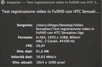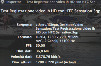 - Test registrazione video a 720p con Htc sensation