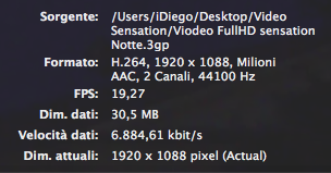 Il formato è 3GP con audio stereo AAC 44.100 hz a 2 canali