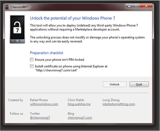 Chevron WP7, il tool per effettuare il “Jailbreak” dei dispositivi Windows Phone 7 sarà venduto al prezzo di 9 dollari.