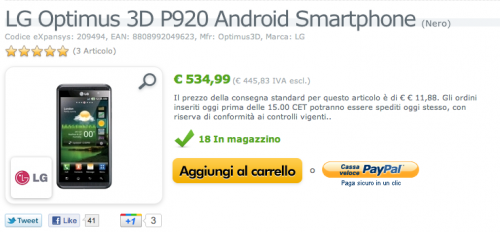 Vi ricordo che LG Optimus 3D lo potete trovare in vendita su Expansys al prezzo di 535 euro.