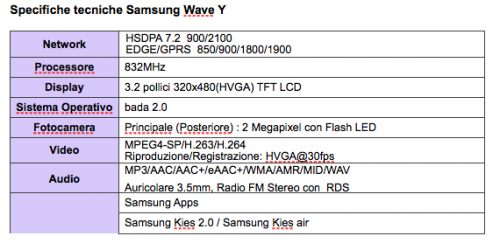 Samsung Wave Y è il dispositivo perfetto per introdurre nuovi utenti nel mondo degli smartphone. Con un aspetto metallico, un corpo sottile ed elegante e un ampio schermo HVGA da 3.2 pollici, i nuovi utenti possono fare i primi passi nel mondo del social networking in mobilità grazie al Social Hub e a ChatON. Funzioni come Live Panel, Lock Screen e Folder management permettono una semplice personalizzazione, mentre il Music Hub mette a disposizione degli utenti un jukebox tascabile.