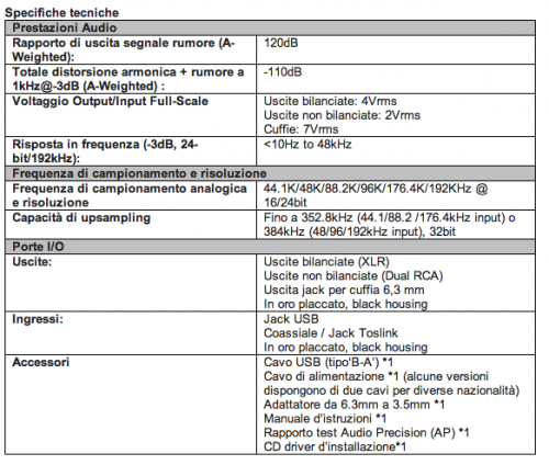 Il rapporto segnale-rumore (Signal to Noise Ratio, SNR), che in media raggiunge circa 110 dB, tocca addirittura i 120 dB. Da oggi, gli audiofili potranno godere di sonorità estremamente limpide, arrivando a cogliere i più piccoli dettagli sonori, senza la fastidiosa presenza dei rumori di fondo. Infine, un alimentatore dedicato assicura una fornitura di corrente elettrica “pulita”, in modo che ogni suono sia riprodotto in modo ottimale, evitando i classici disturbi causati da un alimentatore convenzionale.