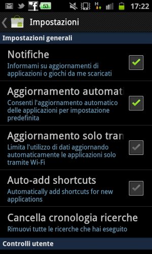 Adesso vi è la possibilità di aggiornare tutte le app in un colpo solo, scegliere se aggiornare solo via wifi e vi è la possibilità di aggingere automaticamente alla home il collegamento dell’ applicazione appena installata.