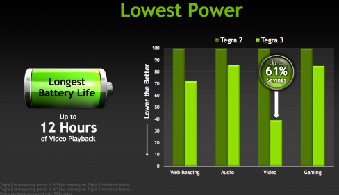 Grazie alla nuova tecnologia vSMP, Tegra 3 è in grado di garantire prestazioni eccezionali senza inficiare sulla durata della batteria.