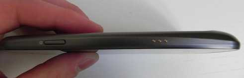 Sul lato destro abbiamo il tasto accensione blocco display e 3 piccoli connettori utili per la dock station