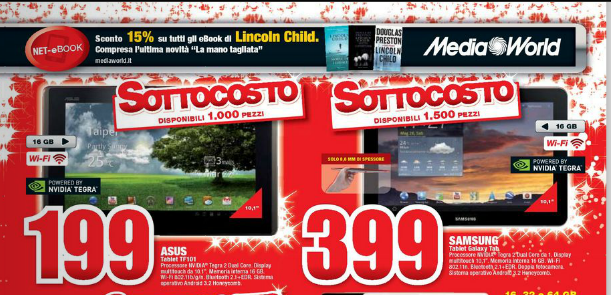 Samsung Galaxy Tab 10.1 viene proposto al prezzo di 399 euro, mentre Asus Transformer all’ incredibile prezzo di 199 euro!