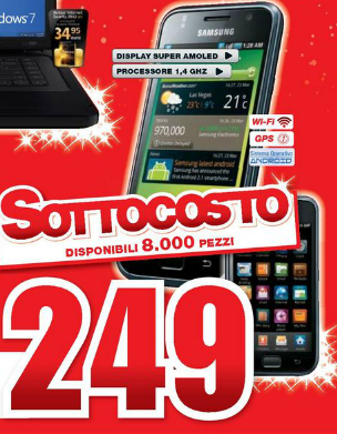 Da segnalare anche il Samsung Galaxy S Plus a 249 euro.