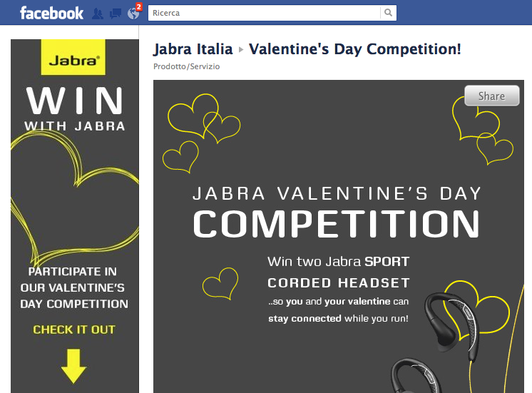 Partecipare è facilissimo, basta cliccare sulla pagina Facebook di Jabra Italia http://www.facebook.com/JabraIT, diventarne fan ed entrare nella sezione Valentine’s Day Competition.